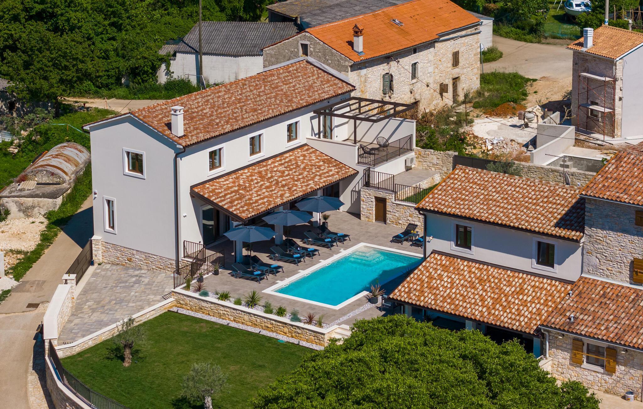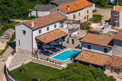 5,0Willkommen in dieser Villa mit Pool, die im typischen istrischen Stil erbaut ist. Sie erstreckt sich über das Erdgeschoss mit Küche, das Wohnzimmer, das Esszimmer, das Schlafzimmer, Bad, WC und im ersten Stock über zwei Schlafzimmer, zwei Bäder und eine