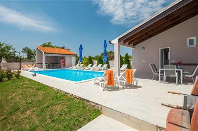 4,3Dieses Ferienhaus befindet sich in einem kleinen Dorf in der Nähe von Pula. Die großzügigen Innenräume sind für einen angenehmen Aufenthalt eingerichtet. Das Grundstück beinhaltet einen großen Swimmingpool, der an heißen Sommertagen für Spaß und Erfrischung