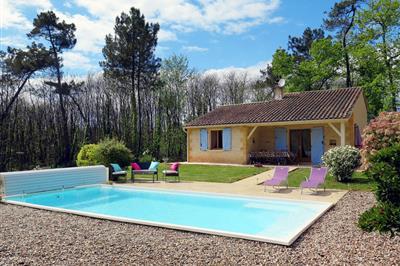 4,6"Le Coustal", 4-Zimmer-Haus 120 m2. Zweckmässig und komfortabel eingerichtet: Wohn-/Esszimmer mit Esstisch und Sat-TV (Flachbildschirm), DVD und Klimaanlage. Ausgang zum Garten. 1 Zimmer mit 1 franz. Bett (160 cm, Länge 200 cm). 1 Zimmer mit 1 Bett (90 cm,