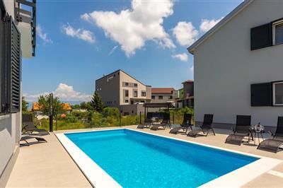 4,5Ein modernes Apartment mit Gemeinschaftspool. Diese Ferienwohnung ist im Erdgeschoss gelegen, somit haben Sie auch Zugang zu einer Terrasse, auf derselben Ebene wie der Pool, die mit Gartenmöbeln ausgestattet ist und den idealen Ort zum Verweilen zu jeder
