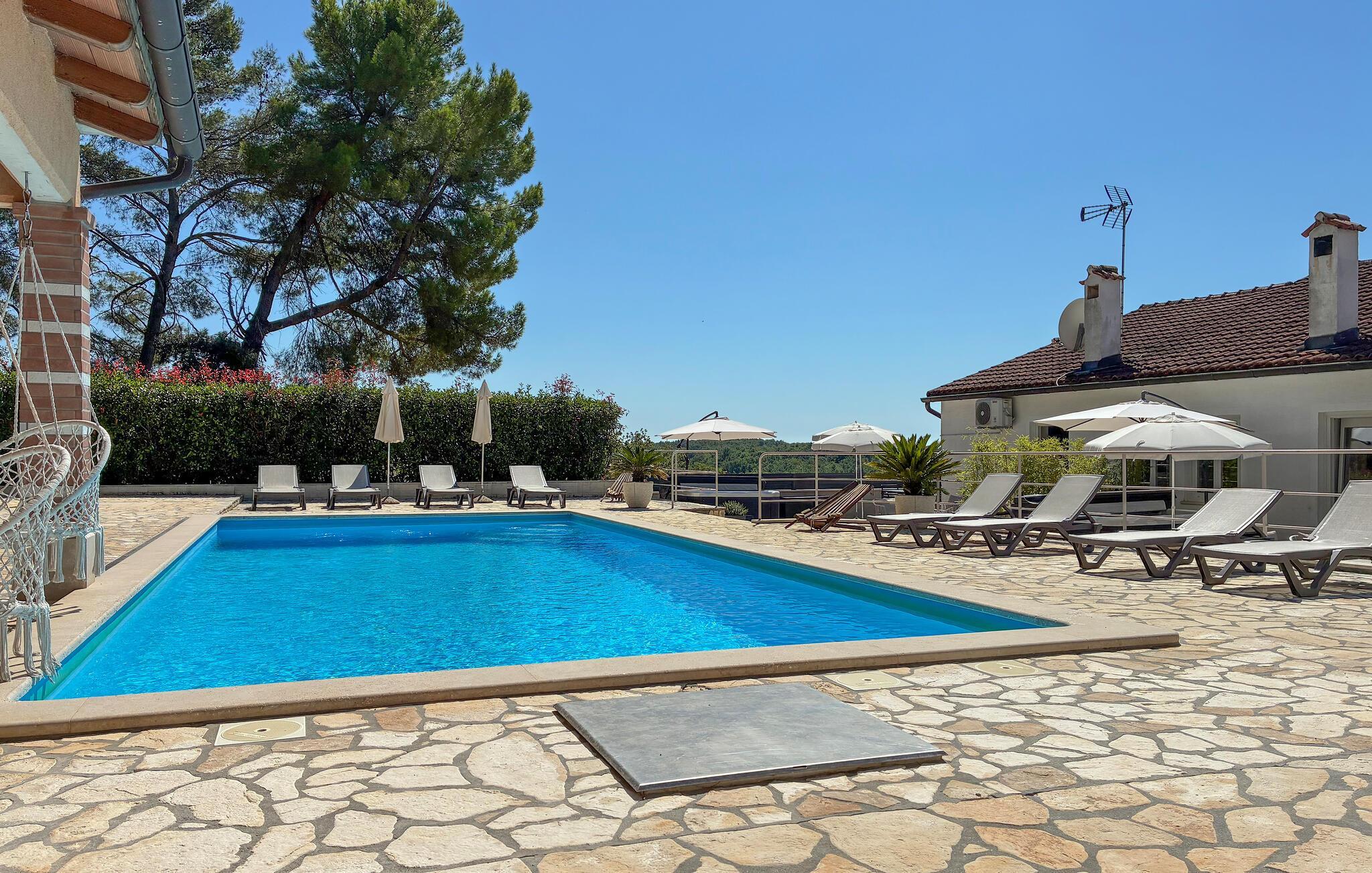 Freuen Sie sich auf eine unvergessliche Auszeit in dieser wunderschönen Villa mit Gemeinschaftspool. Genießen Sie Ihren Urlaub in diesem großzügigen, modernen Ferienhaus, das Ihnen und Ihrer Großfamilie viel Raum zum Entspannen bietet. Auf einem gemeinsamen