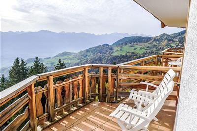 4,5"Ambassadeur 1", 5-Zimmer-Wohnung 140 m2 im 1. Stock. Objekt geeignet für 4 Erwachsene + 3 Kinder. Teilweise renoviert, zweckmässig und komfortabel eingerichtet: Wohn-/Esszimmer mit offenem Kamin (nur Deko), Esstisch und TV (Flachbildschirm). Ausgang zum