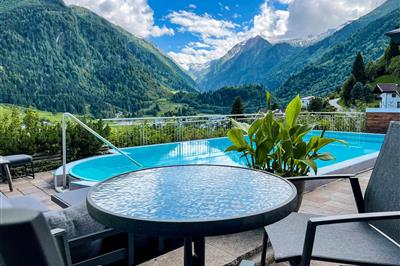Margarethenstein Apartment, 9 a: privat Sauna- 2 Zimmer Das Margarethenstein – Boutique Hotel & Apartment hat in Kaprun einen ganz besonderen Platz gefunden: Das Hotel mit exklusiven Apartments thront auf dem namensgebenden Felsen „Margarethenstein“ mitten im