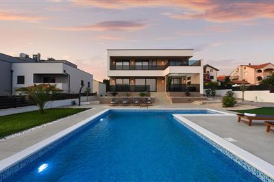 Modernes, komfortables und sehr gut ausgestattetes Ferienhaus von dem sich ein atemberaubender Panoramablick auf das Meer und den Archipel von Zadar bietet. In diesem Ambiente können Sie sich gut am Pool entspannen und ein gutes Buch lesen und in den