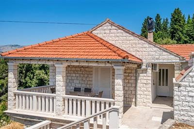 Auf dem sonnigen Hügel des charmanten Dorfes Žrnovo, genau dort, wo der Blick auf den Pelješac-Kanal reicht, befindet sich dieses schöne Ferienhaus, dessen komfortables Interieur und Exterieur perfekt in die mediterrane Umgebung passt. Von diesem alten